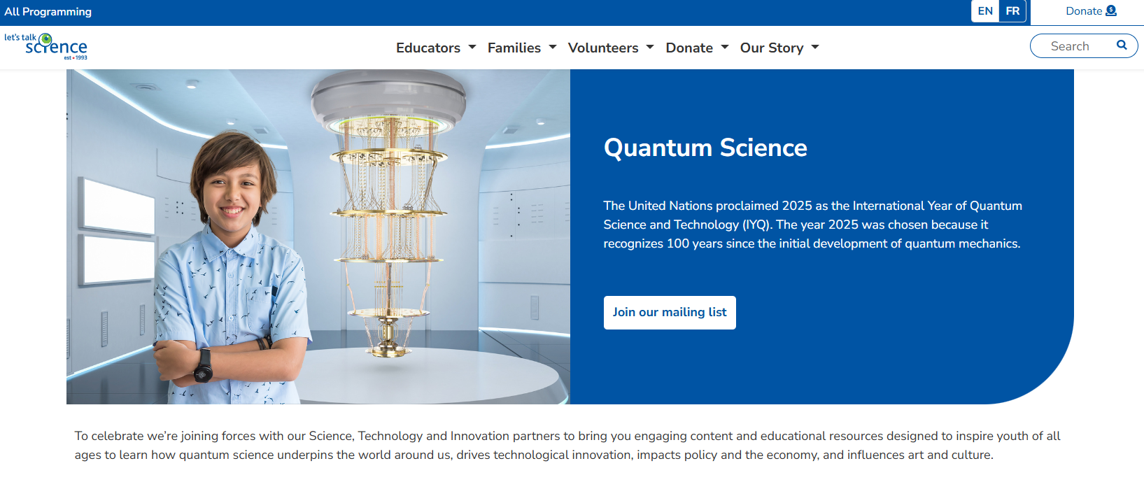 Let’s Talk Science provides educators of grades 1 to 12 with free, curriculum-aligned STEM resources, including hands-on activities, lesson plans, and professional learning opportunities. It also offers access to outreach programs and digital platforms that support student engagement in science, technology, engineering, and math.